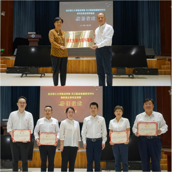 会上,向长江航运发展研究中心授予学校“研究生联合培养基地”,为中心的兼职研究生导师颁发聘任证书。