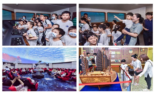 第二部分,参观博物馆和实验室。在老师和家长们的陪同下,小朋友们先后来到成人电影线上看六自由度航海模拟器、航海博物馆、天象馆四楼天象厅进行参观,实地接触家长们工作的环境,涉猎小众的航海领域知识,处处充满了好奇,感受到家长们工作的了不起。他们通过各种古船模型了解生动的船舶发展史,体验海上驾船迎风斗浪的乐趣,感知浩渺星空、广袤宇宙的神秘……一张张天真无邪的笑脸,一双双充满求知欲的眼睛,一声声充满惊喜的赞叹,洒遍了实验室和校园沿途的角落,感染了平时辛勤工作、疏于陪伴孩子的家长们。