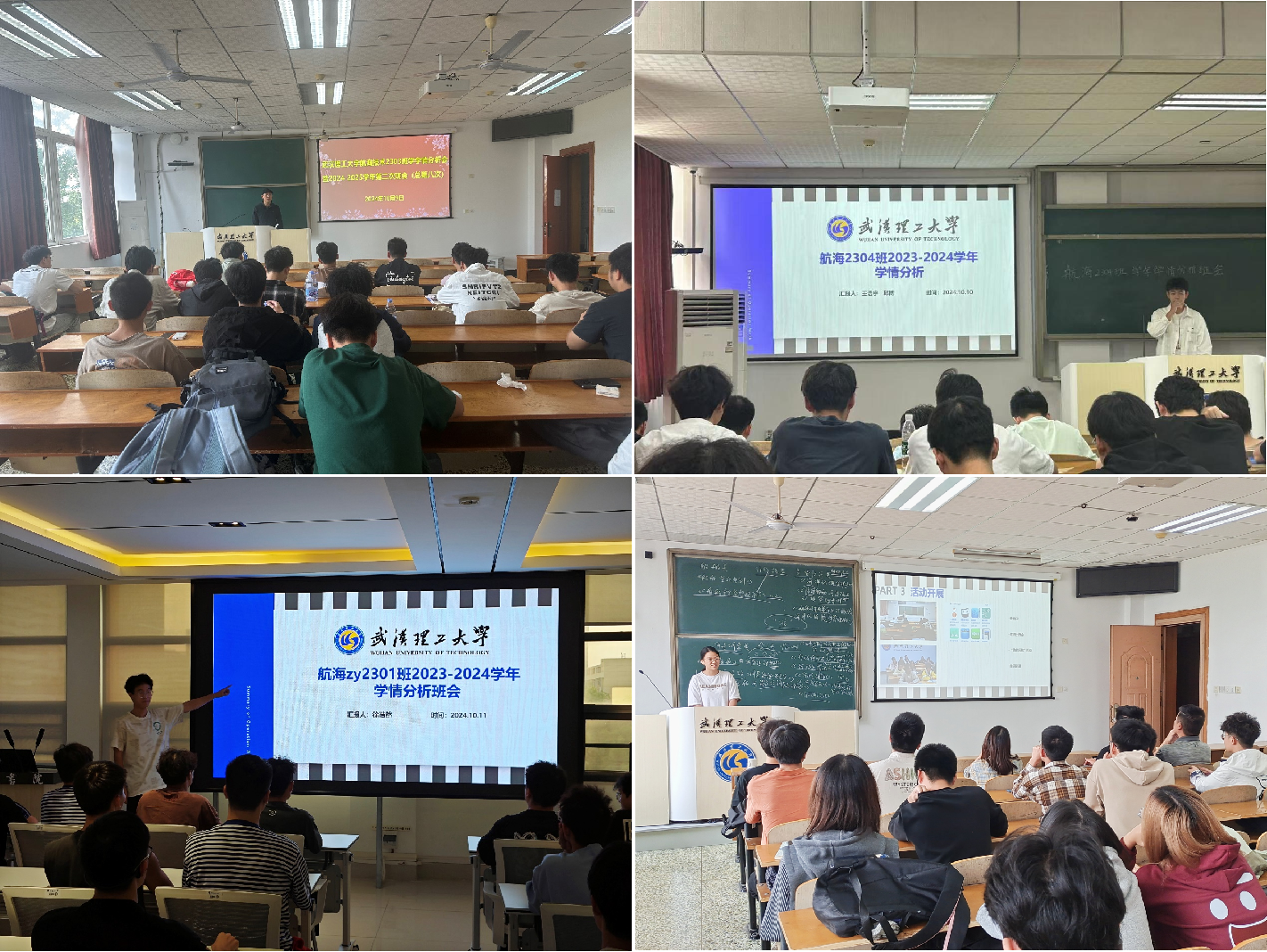 各班级学习委员就上一学年学习基本情况、班集体建设情况、活动开展情况及未来展望四个方面进行分析,指出班级取得的成绩及存在的不足,规划下一学年学风建设活动。班主任就学风建设、学习经验、成绩情况三个方面给出了自己的分析,同学们针对薄弱科目拟定未来学习计划与目标。