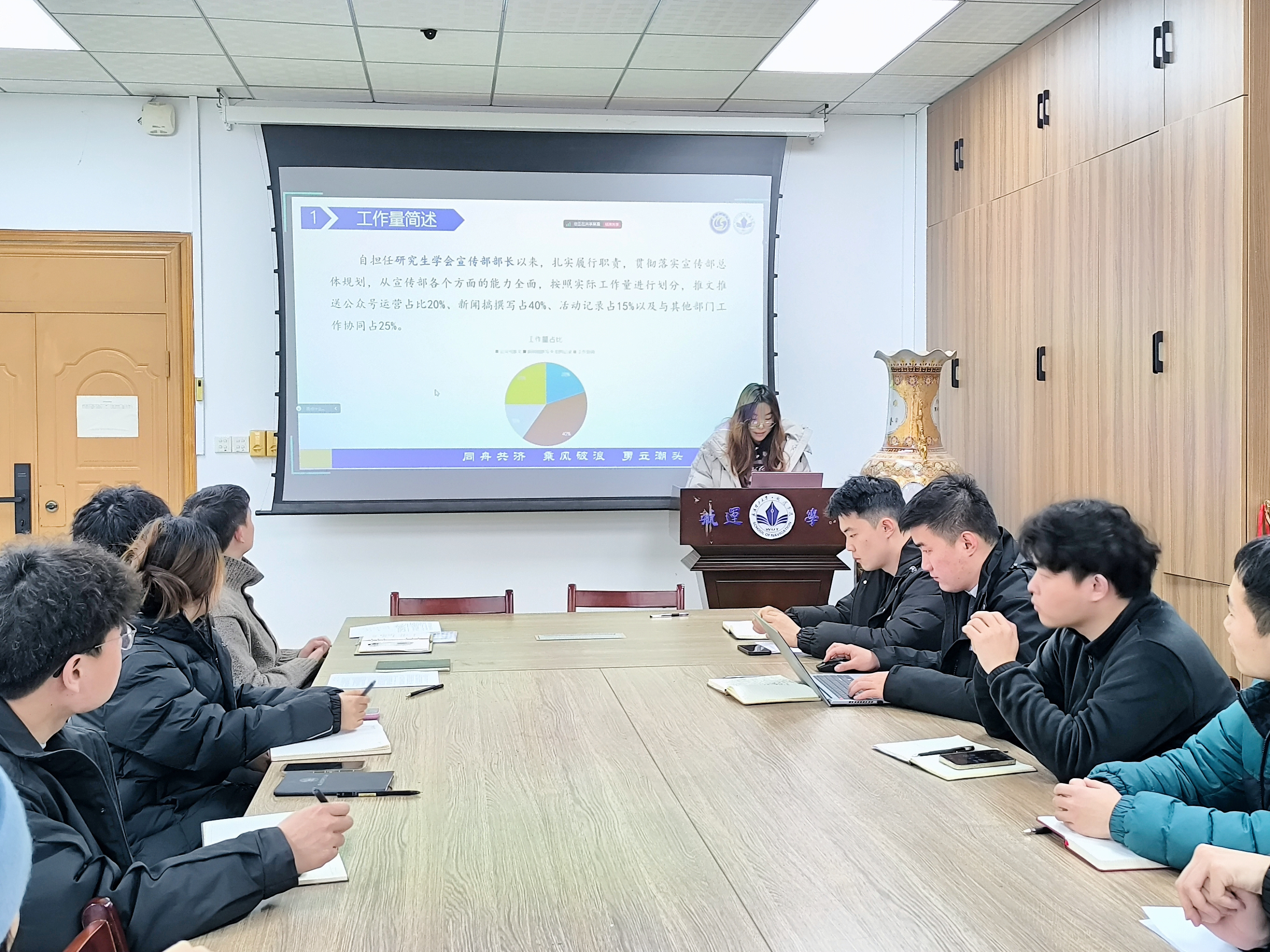 1月3日,成人电影线上看 研究生会于航海楼3001会议室召开2024-2025学年第一学期述职评议。党委副书记王树鹏、团委书记邓晓光、研代表、学代表及研究生会全体成员参加,会议由研究生会执行主席朱俊主持。