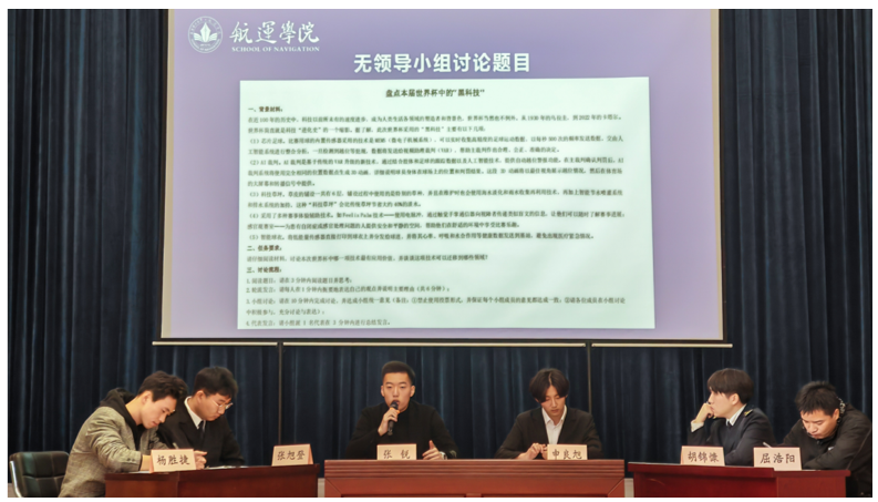 待全体选手展示结束后,6名选手集体上台进行无领导小组讨论,围绕给定题本进行讨论并给出小组结论赛前,在确定题本的过程中,周妍霏结合6名选手的岗位特点精心选择了题本,选手比赛结束后周妍霏对每名选手的表现都进行了现场点评。