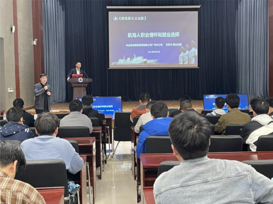 讲座中,汪家元副总经理围绕“波澜壮阔的历史激励我们坚守航运强国的战略选择、光辉壮丽的航程鼓舞我们坚守航运强国的伟大抱负、恢宏壮美的蓝图感召我们坚持海运成才的人生航向”三个方面展开。他从航海的起源到发展讲起,讲述了航海这一行业和国家航运事业的发展历程,鼓励同学们以持之以恒的学习、海纳百川的胸怀、脚踏实地的定力、战风斗浪的勇气面对未来挑战,希望同学们在百年圆梦的路上,像校歌所唱的那样,青春志图强,投身航海事业继承航海精神,迎接风浪洗礼,开创海洋强国的崭新时代。讲座最后,汪总经历结合自身的航海经历对中远海运海员广州分公司进行了简单介绍,希望同学们在即将到来的就业季可以加盟中远海运,为建设航运强国贡献智慧力量。