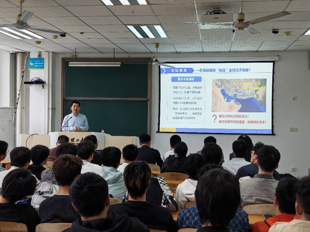 刘克中院长以《AI浪潮下,海事何为?》为题,结合美以伊战争影响和霍尔木兹海峡等地缘政治经济形势,以及国际海事组织水面无人船规则,以及我国交通运输部等四部门“智能航运2030计划”,说明航运业正在发生深刻变化,海事管理专业适逢巨大的发展机遇。
