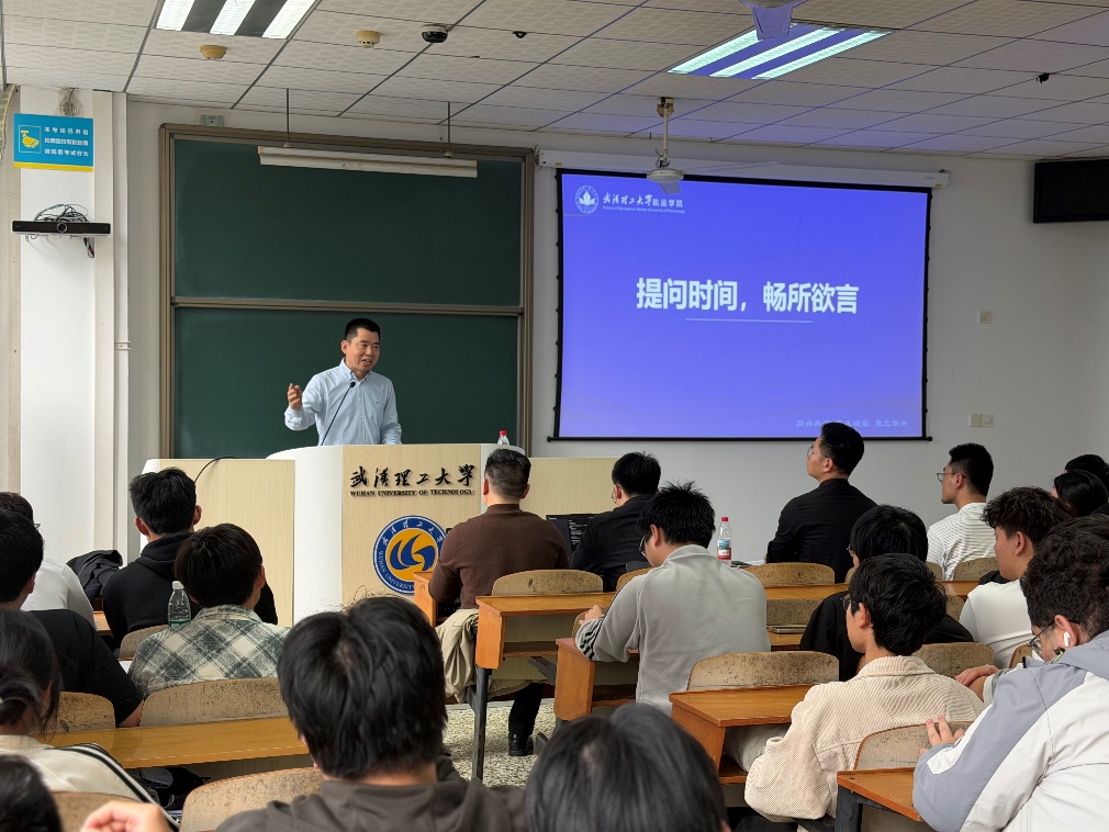 提问交流阶段,同学们从人工智能技术的学习路径、课内学习与校外实践的关系、个人职业发展的规划等方面进行了提问交流。针对学生的提问,刘克中院长和海事系相关教师进行了具体回答。