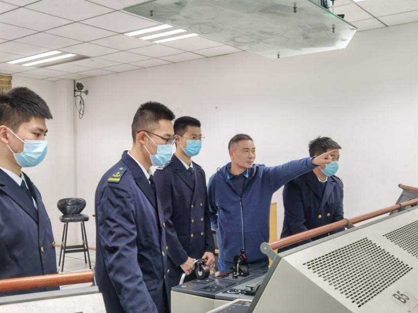 翁建军老师(右三)通过航海模拟向学生们传递航海感受