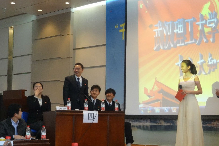 翁建军老师和学生一起组队参加十八大知识抢答赛