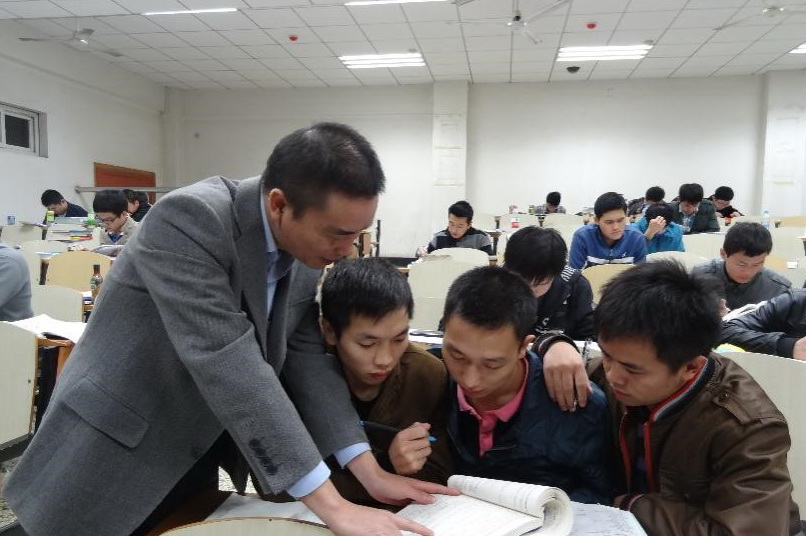 翁建军老师(左一)在辅导答疑